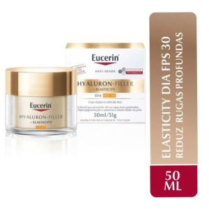 O Creme Facial Anti-Idade Eucerin Hyaluron-Filler + Elasticity FPS30 é um tratamento intensivo desenvolvido para prevenir e reduzir os sinais visíveis do envelhecimento da pele. Formulado com ácido hialurônico, biopeptídeos e proteção solar FPS30, ele age no preenchimento das linhas finas, melhora a elasticidade da pele e oferece proteção contra os danos causados pela radiação UV. Com o uso contínuo, a pele fica visivelmente mais firme, hidratada e com aparência mais jovem.